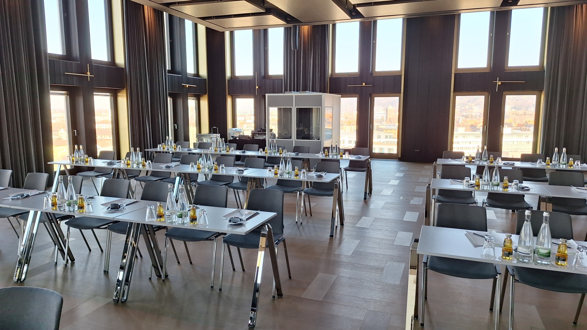 Wir installieren Dolmetscherkabinen im Eventsaal und kümmern uns um die einwandfreie Durchführung.